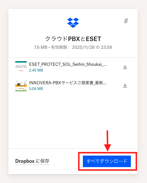 URLをクリックすると下記の画面が表示されます。「すべてダウンロード」をクリックします。