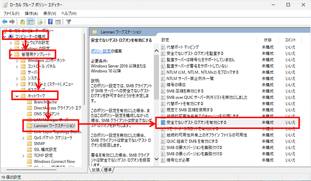 4.1箇所目:安全でないゲスト ログオンを有効にする